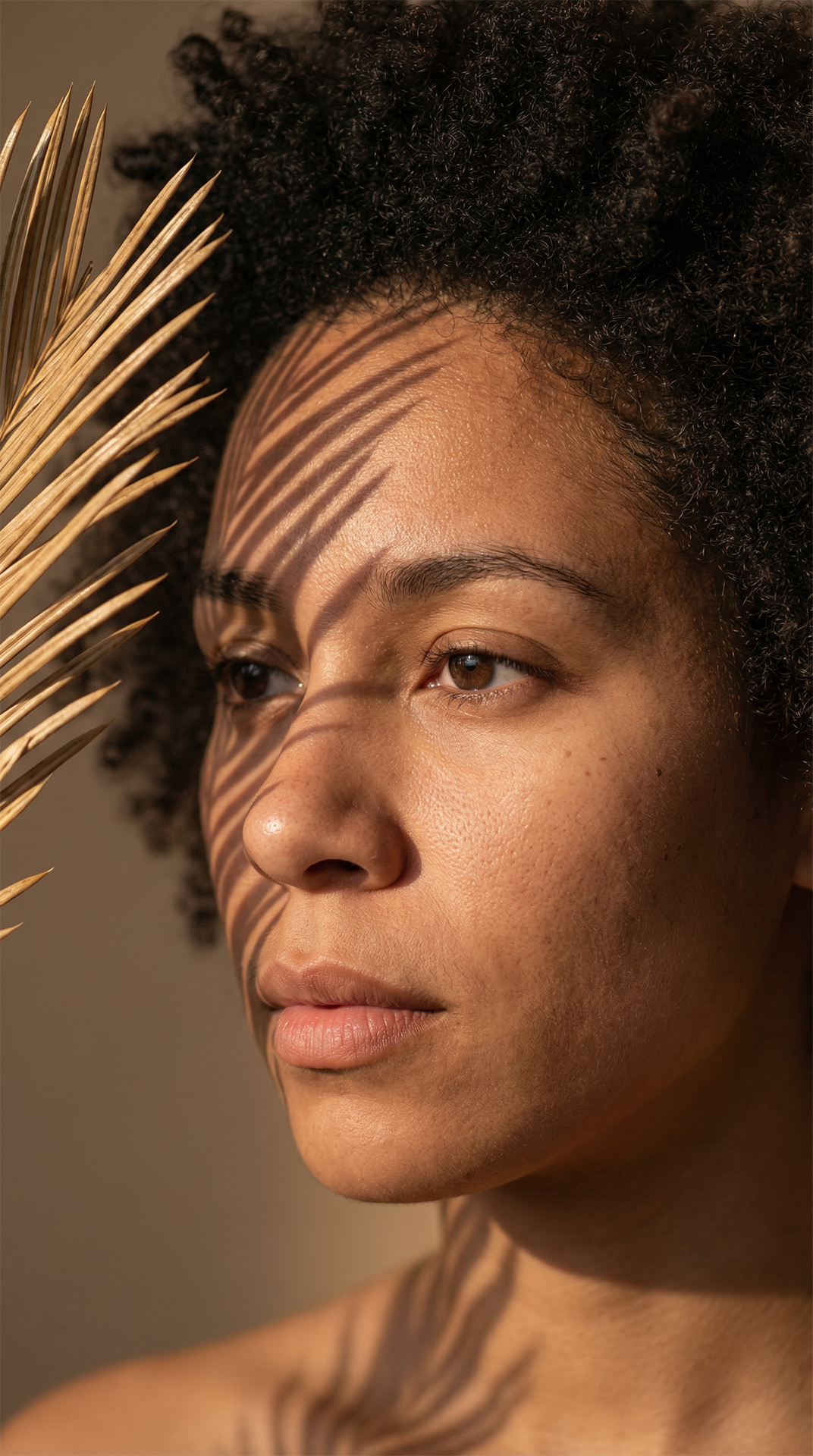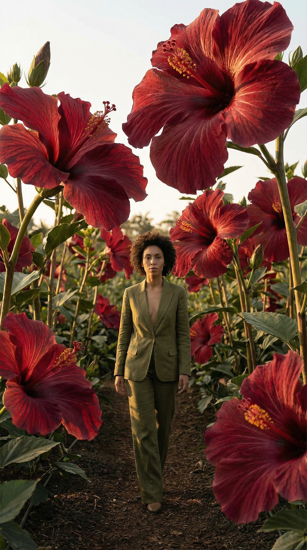 This piece captures powerful stillness surrounded by life; the protagonist meets us with a gaze that needs no words. This visual portrait celebrates unfiltered beauty, the power of presence, and pure connection.